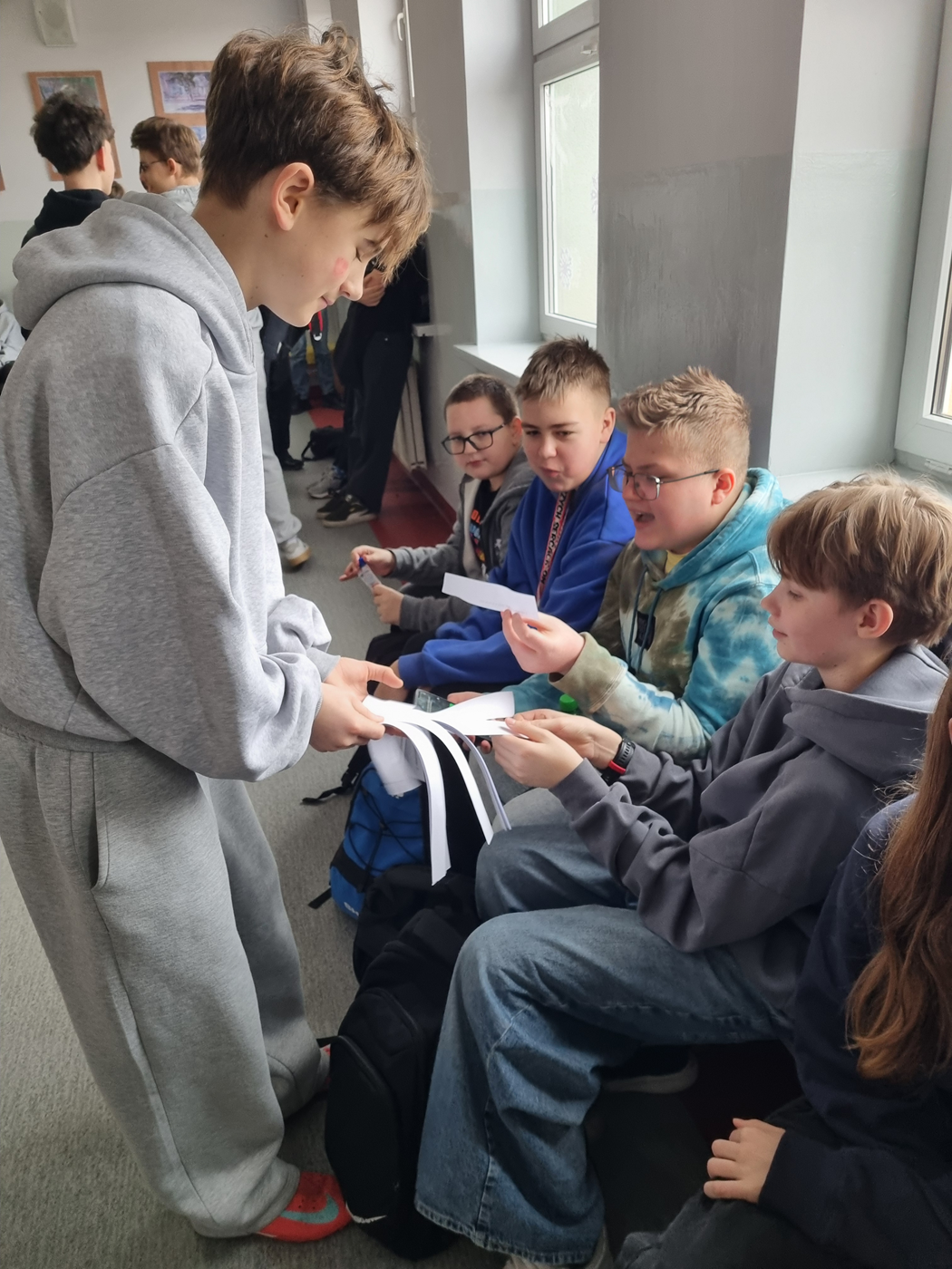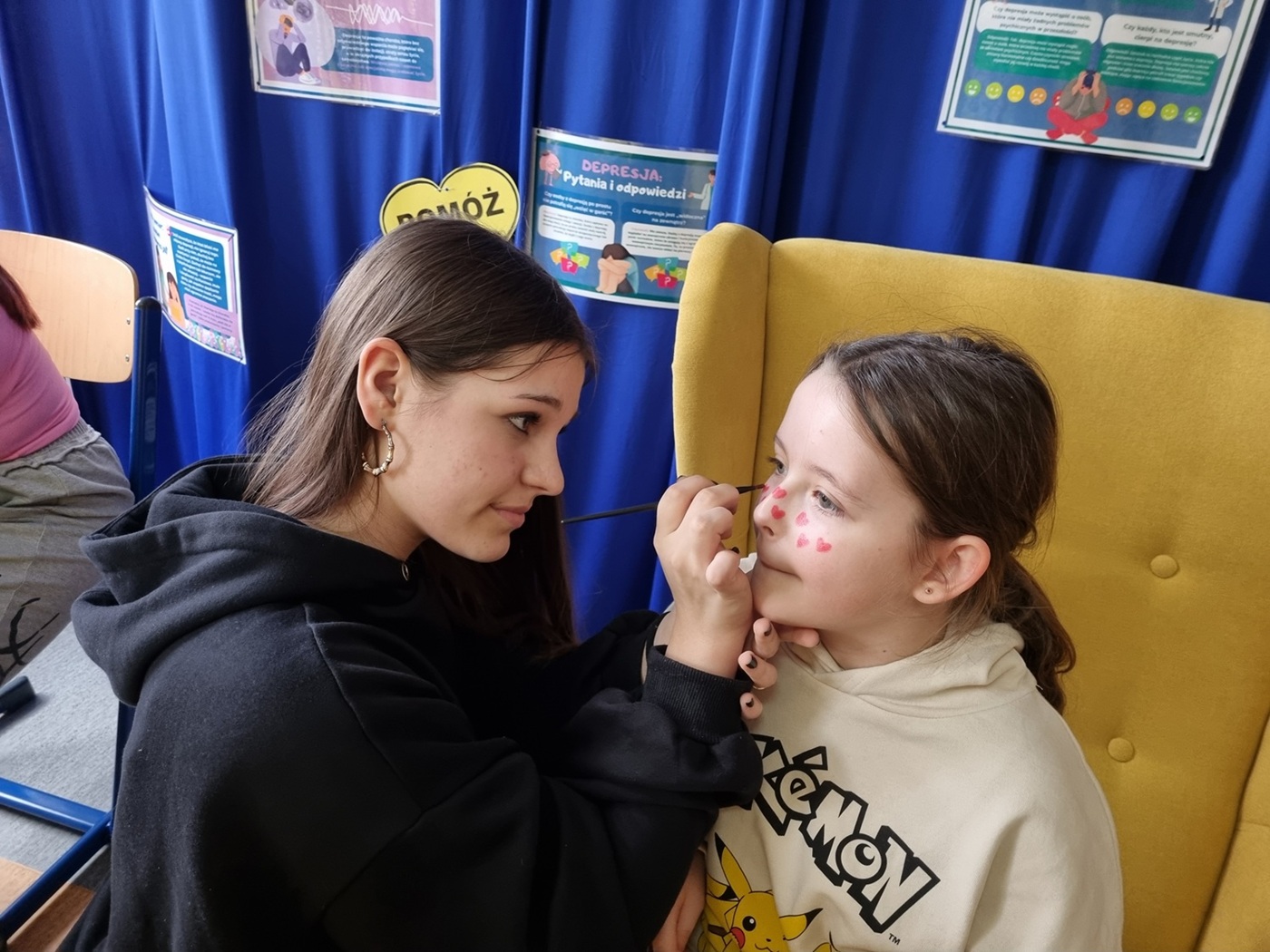 Dla młodszych uczniów przygotowano kącik wyciszenia z mandalami relaksacyjnymi, gdzie mogli na chwilę się zatrzymać i odpocząć. Na szkolnych korytarzach pojawiły się także gazetki informacyjne zawierające wskazówki, jak rozmawiać o emocjach oraz gdzie szukać pomocy.