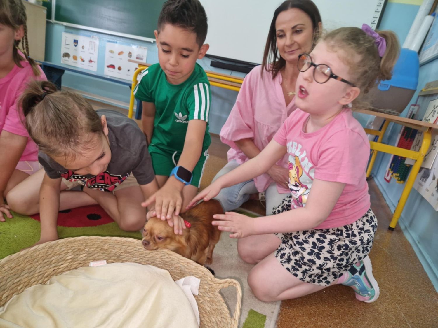 Podczas spotkania dzieci dowiedziały się, czym jest dogoterapia i jaką rolę pełnią psy w pracy z ludźmi. Uczniowie mieli możliwość pogłaskać psa, nauczyć się podstawowych zasad kontaktu ze zwierzętami oraz wziąć udział w zabawach i ćwiczeniach relaksacyjnych z udziałem czworonoga.